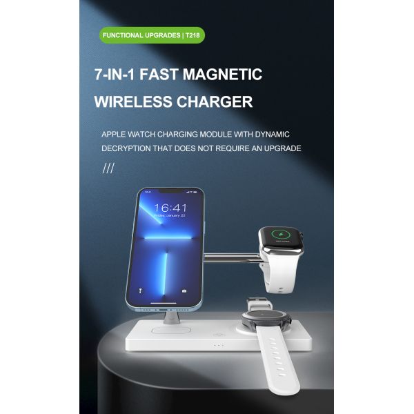 The All In One Wireless Charger model T218 comes in two classic color options: White and Black, making it a perfect fit for any home or office setting.
